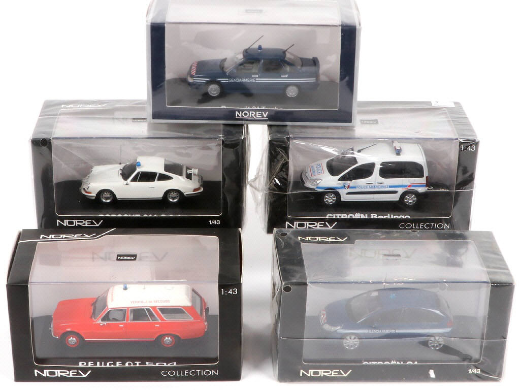 comprend notamment les modèles : RENAULT 21 TURBO 'GENDARMERIE', CITROËN BERLINGO 'POLICE MUNICIPALE' & PORSCHE 911 S 2.4 'POLIZEI' - boîtes en état 'a' à 'b'