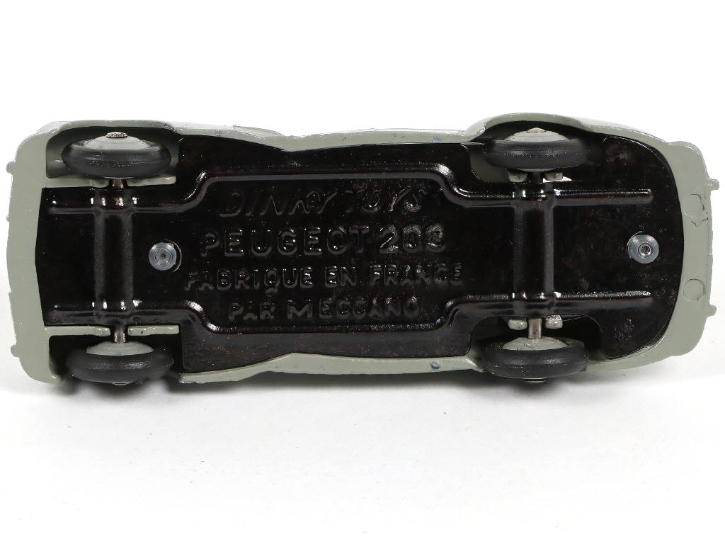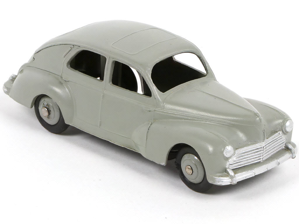 DINKY TOYS (FRANCE) 24R PEUGEOT 203 Petite lunette arrière (version avec intérieur de toit lisse & feu de stop) gris moyen, jantes identiques