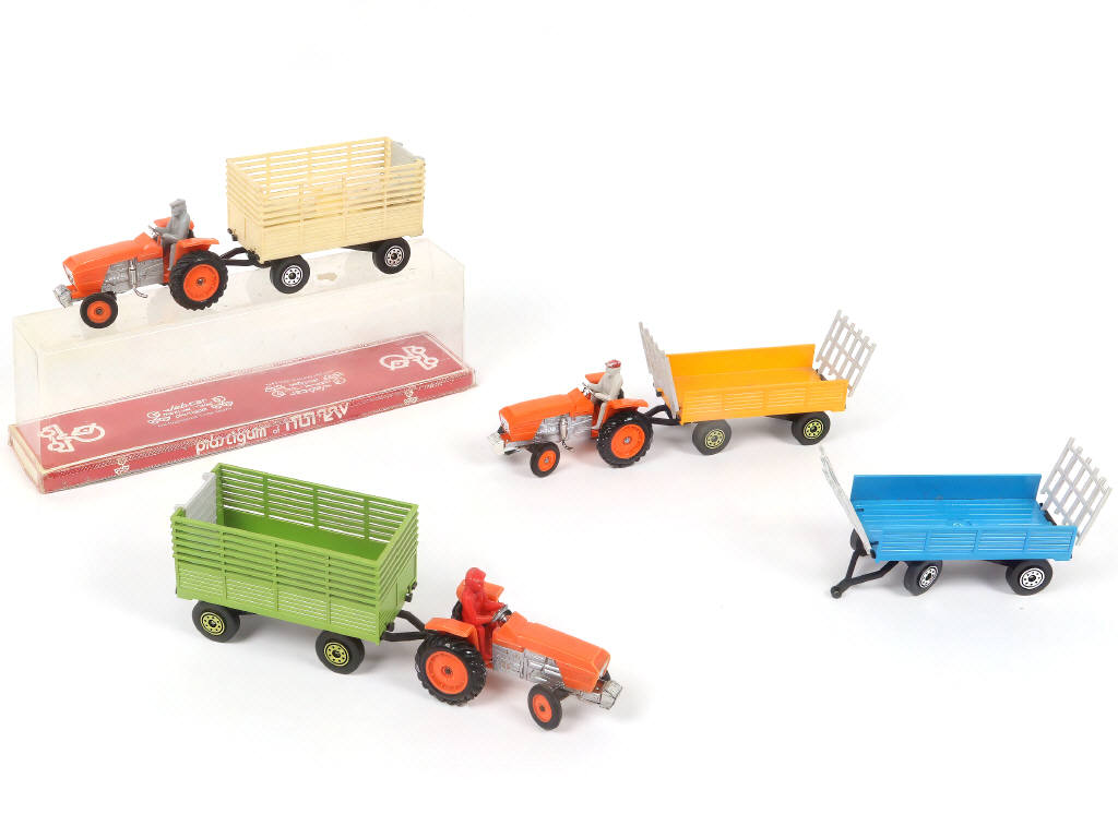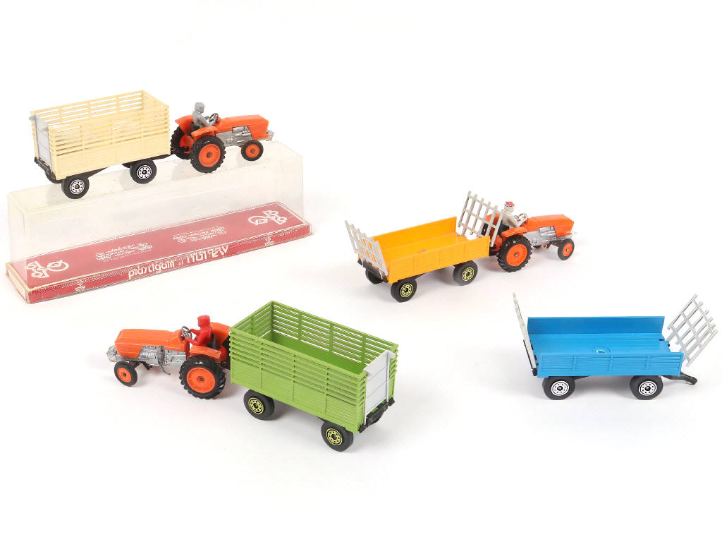 NOREV (FRANCE) Ensemble de 3 tracteurs RENAULT R86 & 4 remorques