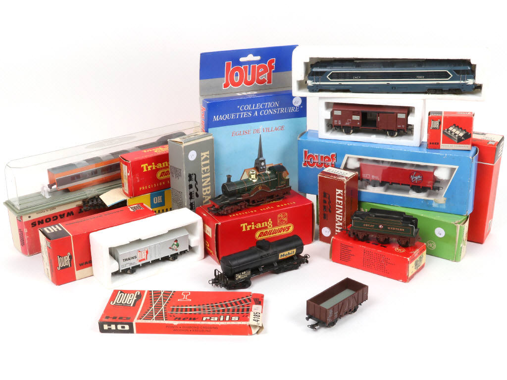non testé - on y retrouve notamment les marques : JOUEF & TRIANG - avec manques & parties cassées (suivant les exemplaires) - les boîtes sont en état de 'b' à 'd'