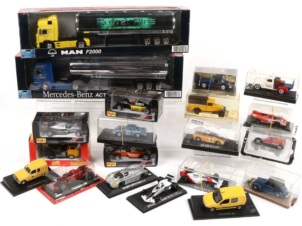 comprend notamment les marques : SOLIDO, MAISTO & NEW RAY - possibilité de petits manques & parties cassées - boîtes en état 'a' & 'b'