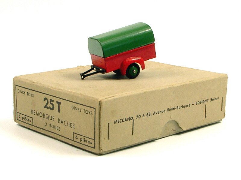 DINKY TOYS (FRANCE) 25T Remorque bâchée à 2 roues rouge, jantes & bâche vertes