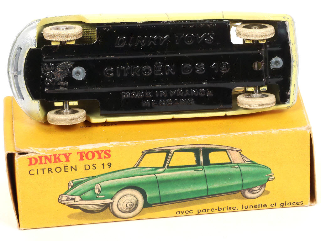 DINKY TOYS (FRANCE) 522 CITROËN DS 19 (version avec vitres & jantes concaves) jaune paille, toit gris clair