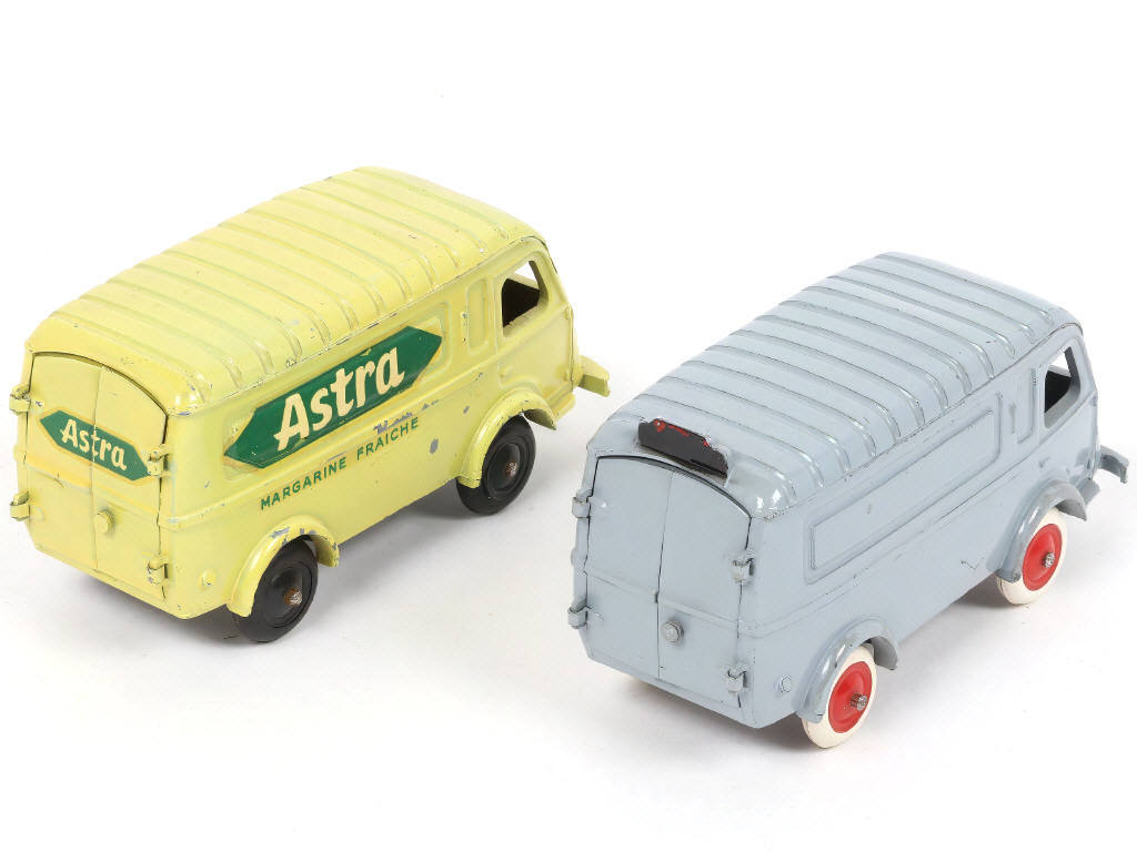 petites traces d'oxydation sur les axes de roues - un petit marquage au tampon sur le plancher - quelques éclats plus ou moins importants sur la carrosserie par endroits - on y joint un autre exemplaire (fourgon classique) de la marque en état 'B' (quelques petites retouches par endroits)