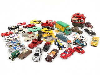 on y retrouve notamment les marques : DINKY TOYS & MAJORETTE - manques & parties cassées sur certains exemplaires - quelques modèles de circuit (non testés)