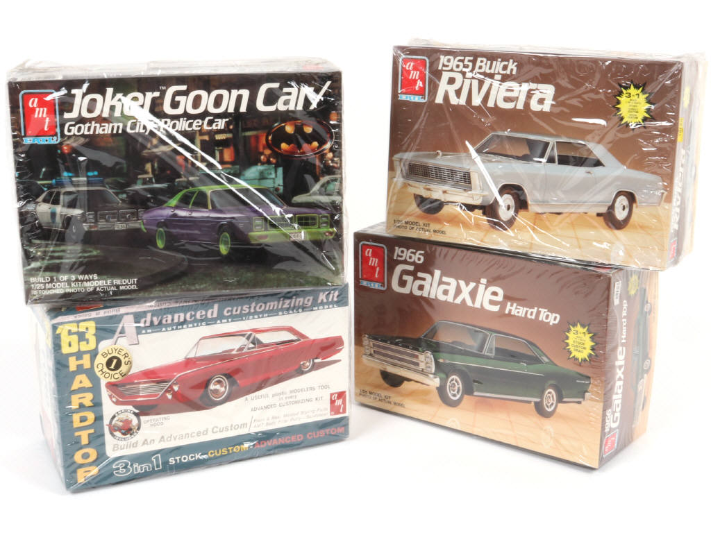 maquettes non montées avec accessoires positionnés sur grappes - boîtes non ouvertes