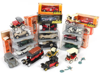 on y retrouve notamment les marques : SOLIDO, SAFIR & J.M.K - les boîtes présentées sont en état 'a' a 'c' - on y joint 2 figurines DINKY TOYS - quelques manques & parties cassées