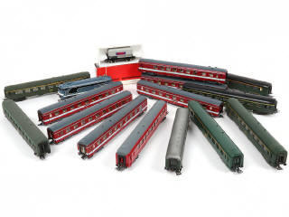 comprend notamment une motrice diesel (non testée) - on y retrouve notamment les marques : JOUEF & ROCO - possibilité de petits accessoires manquants