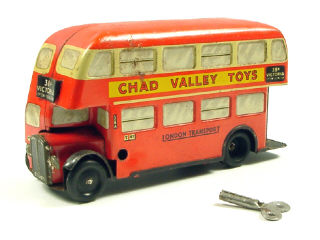 CHAD VALLEY (GB) 10045 Bus londonien 'CHAD VALLEY TOYS' en tôle lithographiée rouge & noir