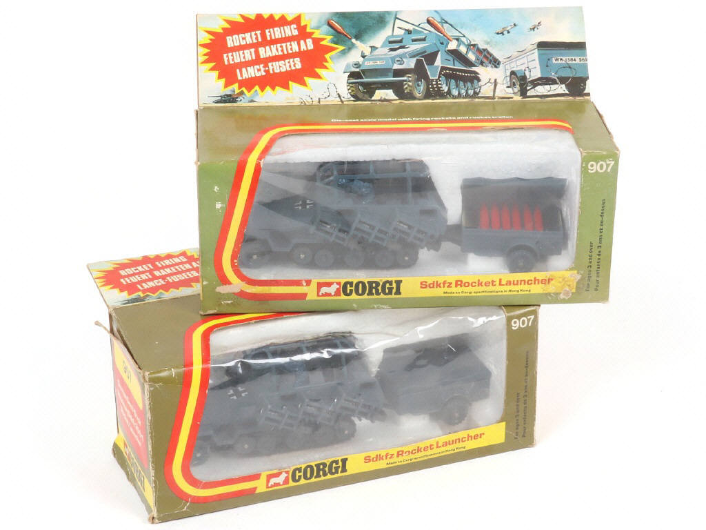 CORGI TOYS (GB) 907 Ensemble de 2 HANOMAG SDKFZ 251/1 Lance-rockets avec remorque à munitions gris armée