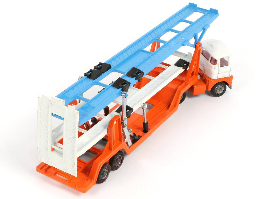CORGI TOYS (GB) 1146 SCAMMELL CARRIMORE Transport de voitures à 3 ponts blanc, orange & bleu