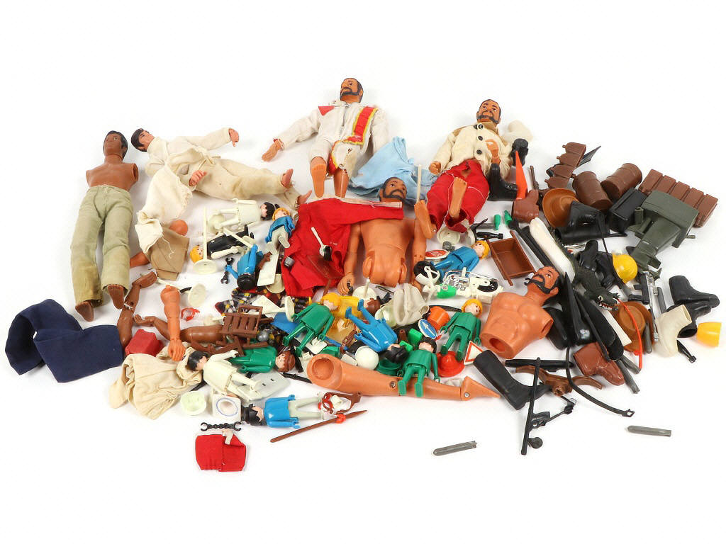 avec manques & parties cassées - comprend notamment un BIG & différents bootleg d'époque, playmobils & différents accessoires