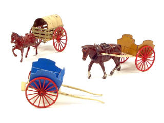 DIVERS Ensemble de 3 charrettes & 2 chevaux