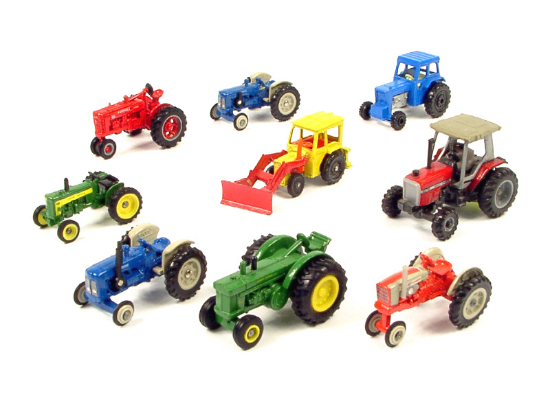 états de 'A' à 'C' - miniatures reproduisant les modèles : MASSEY FERGUSON, FORD, FARMALL, JOHN DEERE & FORDSON - on y retrouve les marques : ERTL, CORGI JUNIOR & MATCHBOX - 2 petits manques sur 2 modèles