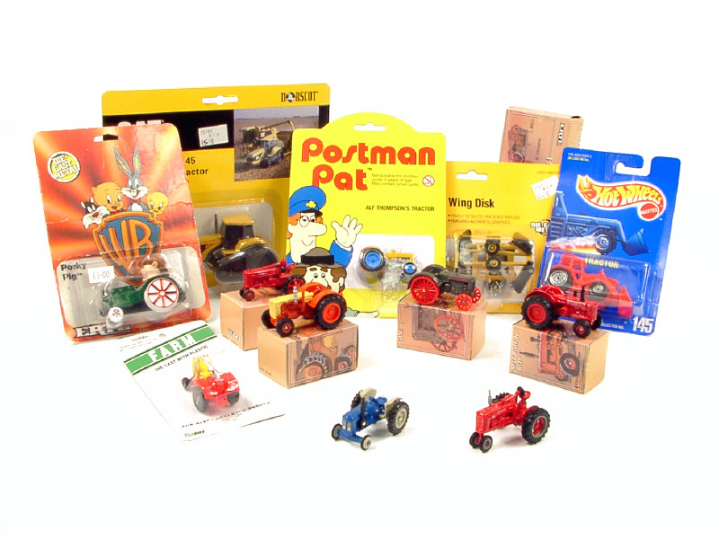 états de 'A' à 'C' - miniatures reproduisant notamment les modèles : Mc CORMICK, CASE, FARMALL, CATERPILLAR & FORDSON - on y retrouve les marques : ERTL, HOT WHEELS, BOLEY & RACING CHAMPIONS - 4 modèles avec boîte & 6 autres sous blister jamais ouvert - on y joint une boîte vide de la marque ERTL
