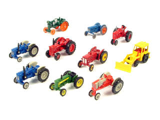 états de 'A' à 'C' - miniatures reproduisant les modèles : INTERNATIONAL, FORD, FARMALL, JOHN DEERE, MASSEY FERGUSON, VOLVO & FORDSON - on y retrouve les marques : ERTL, MATCHBOX, CORGI JUNIOR & HUSKY - un petit manque sur un modèle