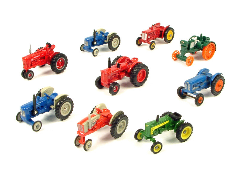 états de 'A' à 'C' - miniatures reproduisant les modèles : INTERNATIONAL, FORD, FARMALL, JOHN DEERE, VOLVO & FORDSON - on y retrouve les marques : ERTL, MATCHBOX, CORGI JUNIOR & HUSKY - un petit manque sur un modèle