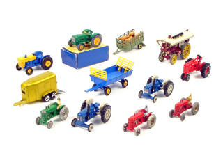 DIVERS Ensemble de 8 tracteurs agricoles, 3 remorques & une locomobile