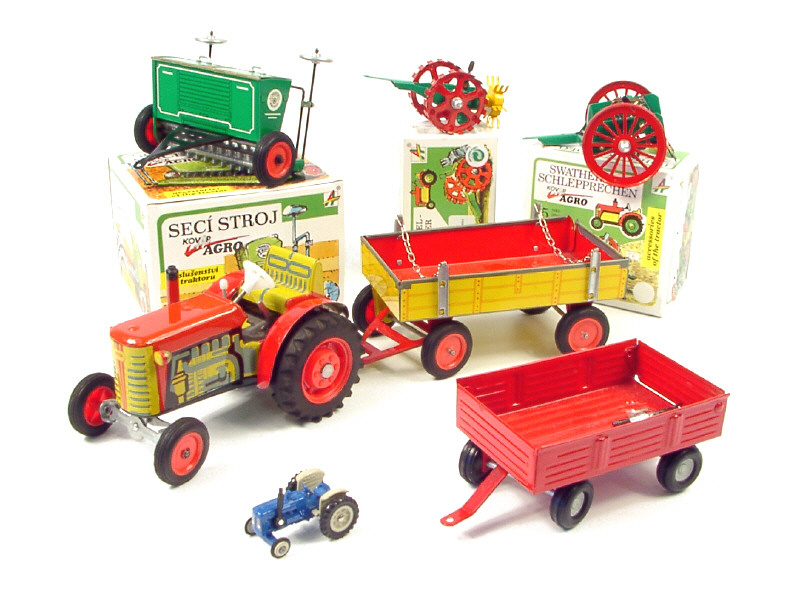 KOVAP (TCHECOSLOVAQUIE) ZETOR Tracteur agricole avec remorque-plateau à ridelles rouge & jaune
