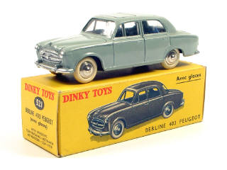 DINKY TOYS (FRANCE) 521 PEUGEOT 403 (version avec vitres & jantes convexes) gris moyen