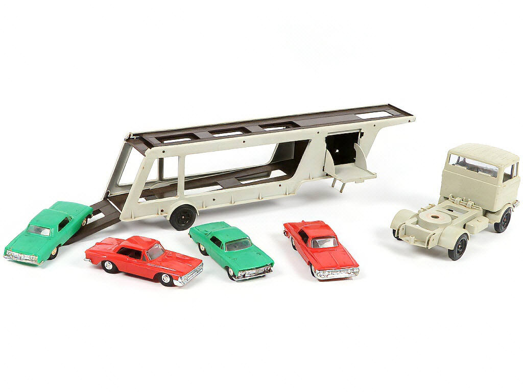 BIG (ALLEMAGNE) 75 MERCEDES Semi-remorque transport de voiture gris & maron
