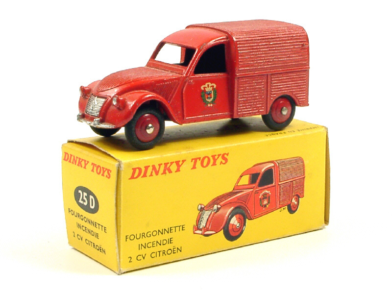 DINKY TOYS (FRANCE) 25D CITROËN 2CV Fourgonnette de pompiers rouge, jantes convexes rouges