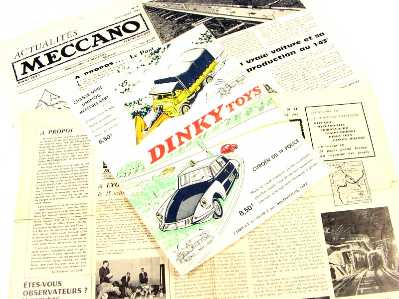 états de 'B' à 'C' : comprend les numéros : n°8 de décembre 1961, n°10 de juillet 1962 & n°11 de novembre 1962 - on y joint une affichette publicitaire DINKY TOYS représentant le MERCEDES UNIMOG chasse-neige & la CITROËN DS 19 police