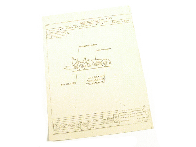 DINKY TOYS (GB) 23J Plan d'étude de la H.W.M. Racing car du 30.09.52