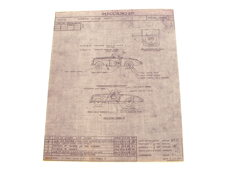 DINKY TOYS (GB) 107 Plan d'étude de la SUNBEAM ALPINE du 03.12.53