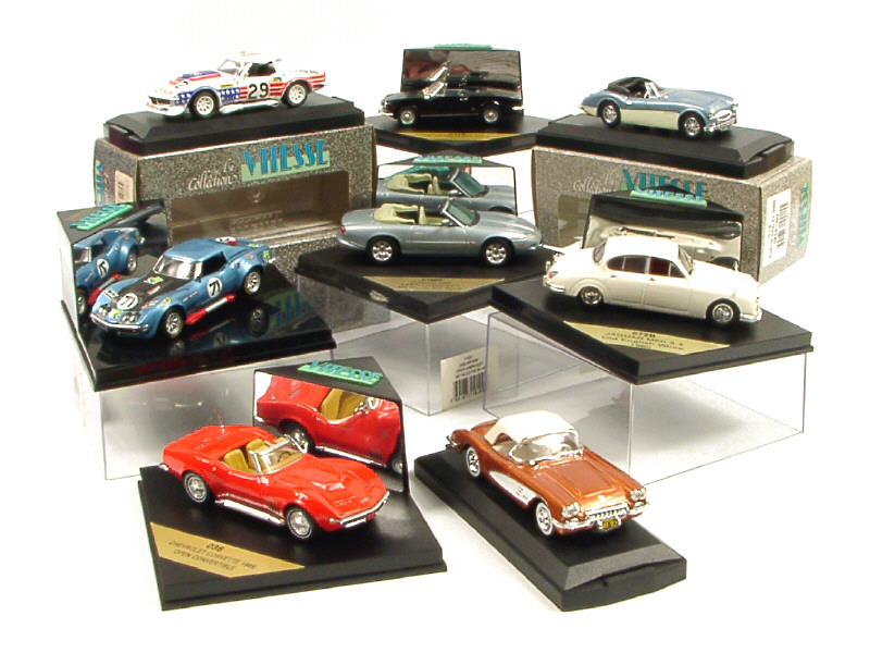 on y retrouve les marques : JAGUAR, CHEVROLET, AUSTIN HEALEY & FIAT
