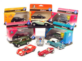 on y retrouve les marques : MERCEDES, RANGE ROVER, FERRARI, MASERATI, DELAHAYE, CITROËN, COOPER, ALFA ROMEO, PEUGEOT & RENAULT - 6 modèles avec boîte