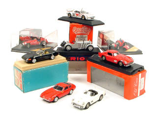 miniatures reproduisant les modèles : MERCEDES, BMW & FERRARI - on y retrouve les marques : RIO, OLD CAR & QUARTZO - 6 modèles avec boîte