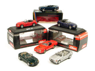 miniature reproduisant les modèles : AUDI, BMW & PONTIAC - on y retrouve les marques : SCHUCO, SCHABAK & KK SAKURA - 3 modèles avec boîte - métal fatigue avec déformation sur le plancher d'un modèle