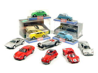 miniatures reproduisant les modèles : CITROËN, VOLKSWAGEN, MERCEDES, FERRARI, BMW & JAGUAR - on y retrouve les marques : NOREV, CORGI CLASSIC, MAISTO, JOUEF EVOLUTION, MATCHBOX YESTERYEAR & GAMA - 6 modèles avec boîte