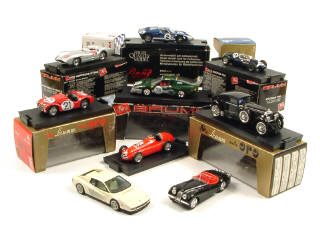 miniatures reproduisant les modèles : MERCEDES, FERRARI, COOPER, FORD, BENTLEY, JAGUAR & ALFA ROMEO - on y retrouve les marques : BRUMM & BBURAGO - un modèle modifié sans boîte