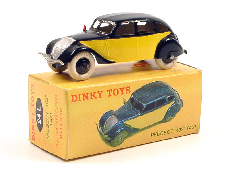 DINKY TOYS (FRANCE) 24L PEUGEOT 402 'TAXI' (version sans plancher & avec roues à pneus 'DUNLOP')