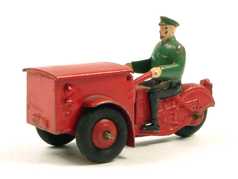 DINKY TOYS (FRANCE) 14A Triporteur (dernière version avec roues à pneus 'M') rouge, jantes rouges & pilote à chemise verte