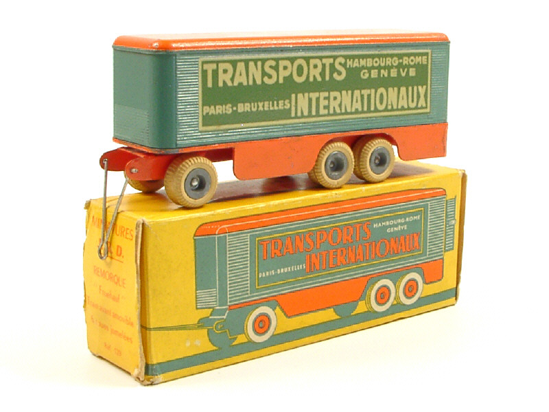 JRD (FRANCE) 129 Remorque 'TRANSPORTS INTERNATIONAUX' vert canard & orange