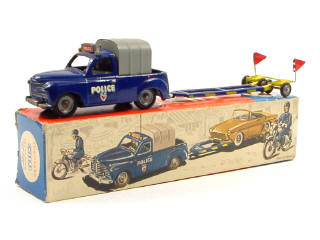 version avec phares-projecteurs jaunes de section ronde, plancher gravé 'POLICE ZONE BLEUE' & chariot muni de roues de petit diamètre