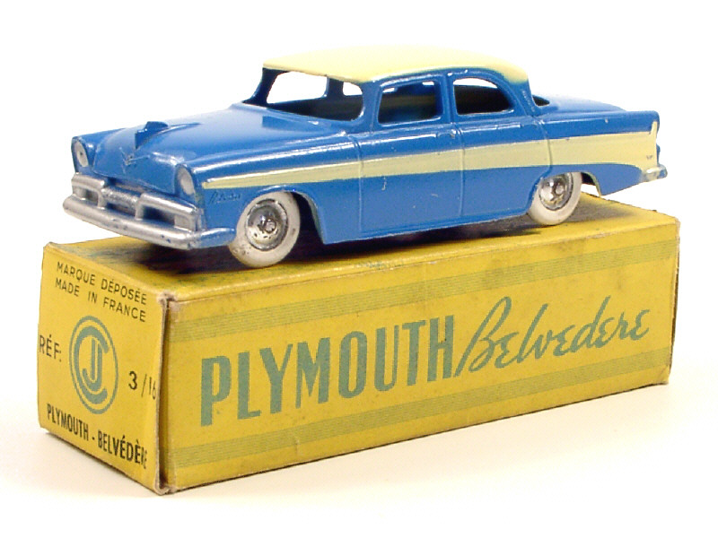 C.I.J. (FRANCE) 3/16 PLYMOUTH BELVEDERE bleu & crème
