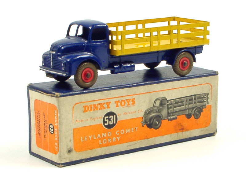 DINKY TOYS (GB) 531 LEYLAND COMET Plateau à ridelles ajourées bleu marine & jaune