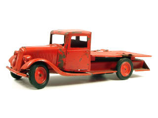 longueur 45 cm - fabrication de 1936-1939 - modèle produit par JRD - moteur à clef (à revoir) - avec direction - fixations de calandre non d'origine - une extrémité de pare-chocs tordue - plateau modifié - traces d'oxydation sur le moteur & les axes de roues - manque ampoules de phares