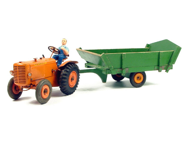 C.I.J. (FRANCE) 8/51 RENAULT R 3040 Tracteur agricole avec remorque fourragère en bois orange & vert