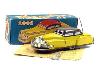 longueur 16 cm - moteur à clef (fonctionne) - en action, la voiture se détourne des obstacles rencontrés & un mécanisme l'empêche de tomber lorsqu'elle arrive au bord de sa surface de roulement - avec notice & clef
