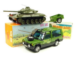 longueur 50 cm - avec remorque 2 roues - la direction est actionnée par la roue de secours sur le capot & le treuil avant fonctionne avec une manivelle amovible - cale de boîte