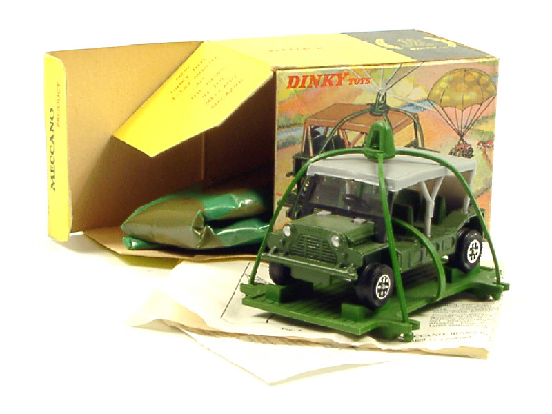 version avec plate-forme de couleur vert clair, roues plastiques avec enjoliveurs chromés & pneu de secours en caoutchouc - avec parachute & notices