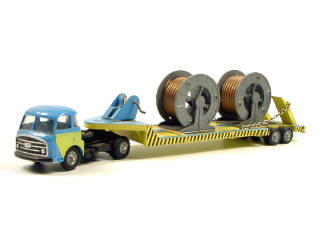C.I.J. (FRANCE) 4/75 SAVIEM LRS Semi-remorque surbaissée porte-bobines de câble bleu & jaune vert