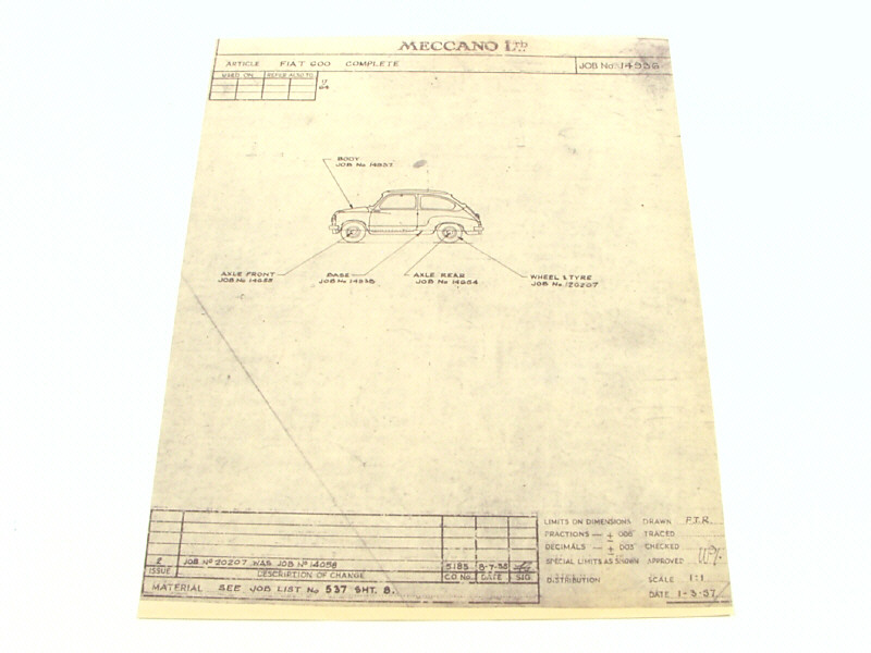 DINKY TOYS (GB) 183 Plan d'étude de la FIAT 600 du 01.03.1957