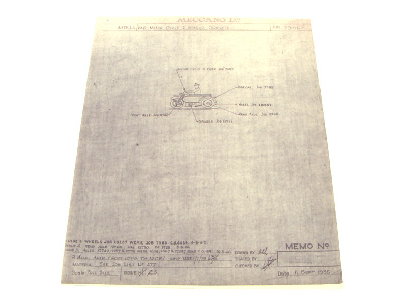 DINKY TOYS (GB) 43B Plan d'étude du Side-Car 'RAC' du 11.09.1935