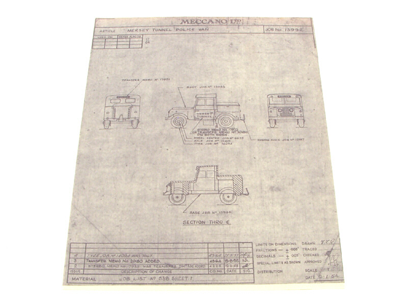 DINKY TOYS (GB) 255 Plan d'étude de la MERSEY TUNNEL POLICE VAN du 06.01.1954